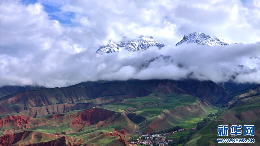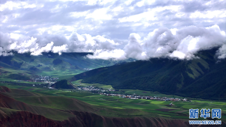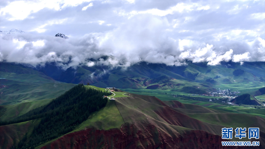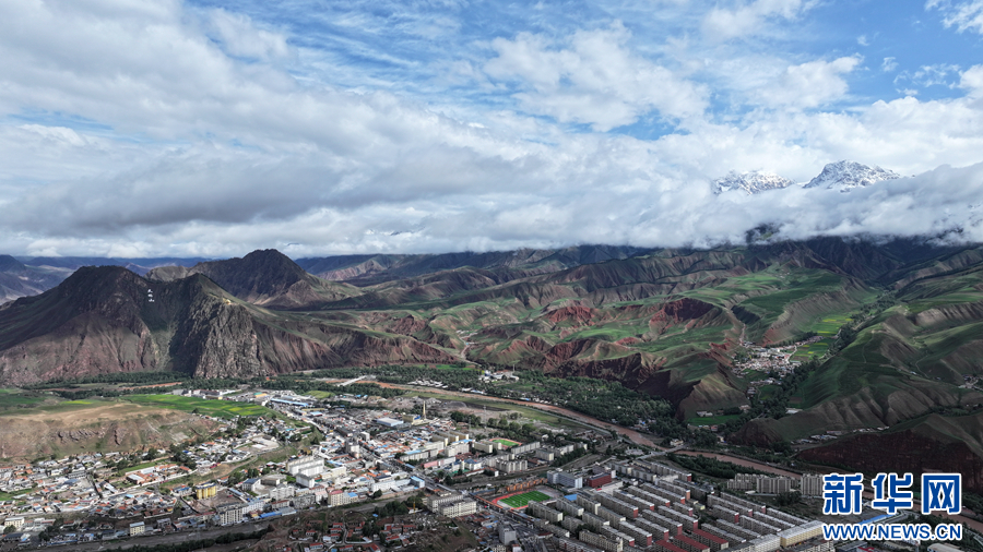 航拍祁连县八宝镇。新华网发(安雪姣 摄)
